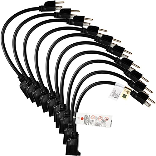 Optimize your reach for outlet power with simple buildable expansion. The Etekcity one foot power extension cable is a simple and affordable solution for adding a some length to your power cords. With a short lenghth of 12 inches, the bundle of cords saves space and solves the issue of using bulky plugs. These extension cords are built with durable resilience to last a lifetime of use. They are abrasion-resistant and are designed with water resistant molded prongs for safe use in moist enviroments. The cables also withstand damage from prolonged sun exposure and direct sunlight.